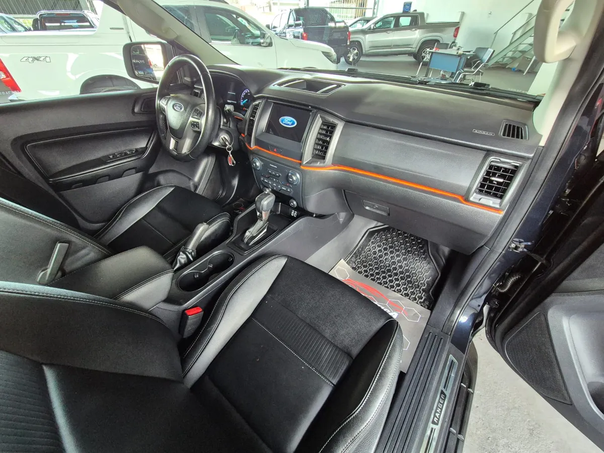 Ranger XLS série Black motor 2.2 4x2 câmbio automático a diesel, equipada com bancos em couro, rodas 18", santo antonio, capota marítima, protetor de caçamba, estribos laterais, entre outros acessórios de fábrica.